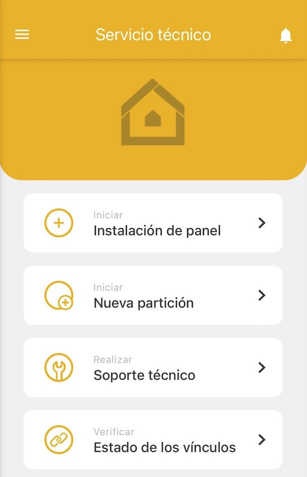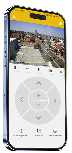 Interfaz limpia y amigable enfocada en las funcionalidades para el usuario final (ej. Visualización de cámaras, activación/desactivación de modos de armado, historial de eventos).