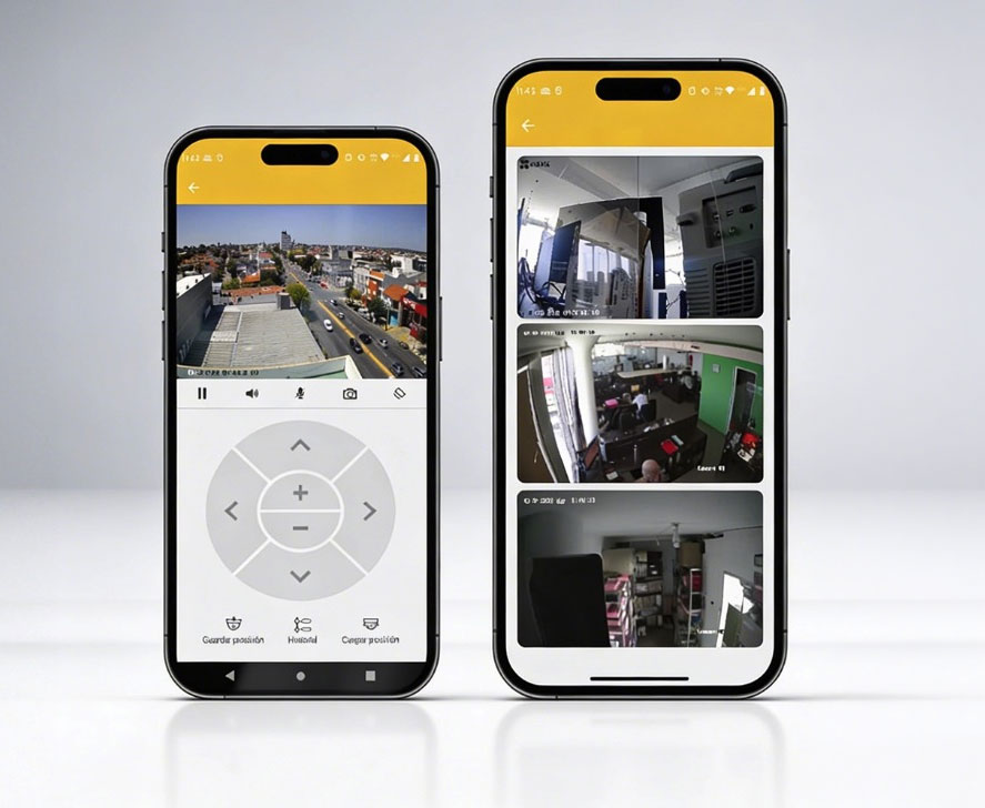 El cliente visualiza sus cámaras IP directamente en la app de tu marca: menos apps, más adopción y soporte más simple.